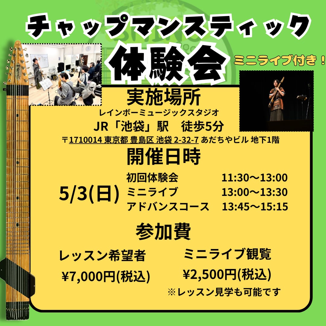 【アドバンスコース】2026.05.03(日)チャップマンスティック体験会